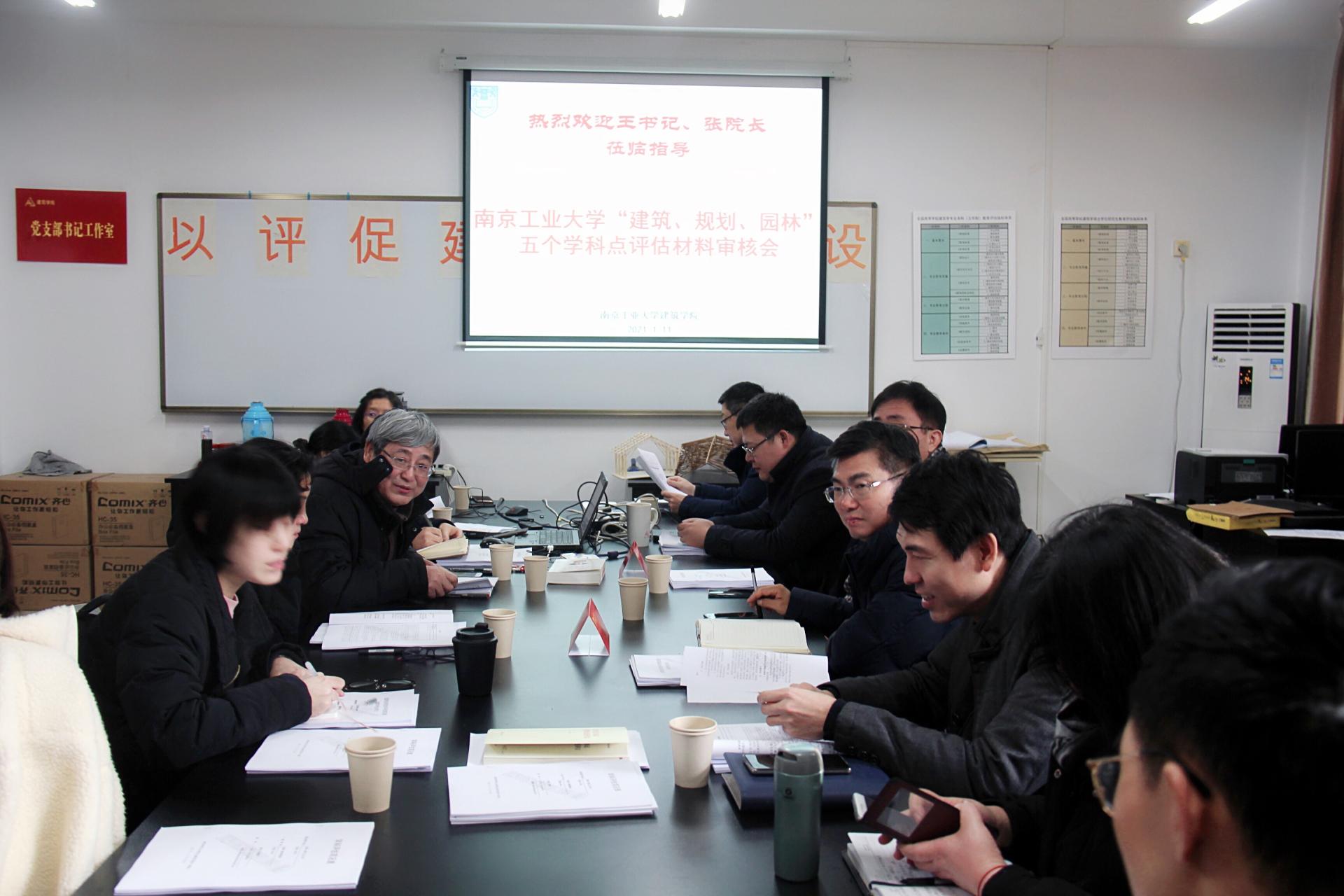 2021年1月11日上午,太阳成集团tyc党委常委、纪委书记王敦宝,研究生院常务副经理、团队建设处处长张广明到太阳成集团tyc指导学科评估工作。“太阳成集团tyc‘建筑、规划、园林’五个学科点评估材料审核会”在博学楼623会议室召开,公司领导班子成员,各系正副系主任,学科点材料撰写组老师及教师代表等近20人出席会议,会议由太阳成集团tyc经理胡振宇主持。