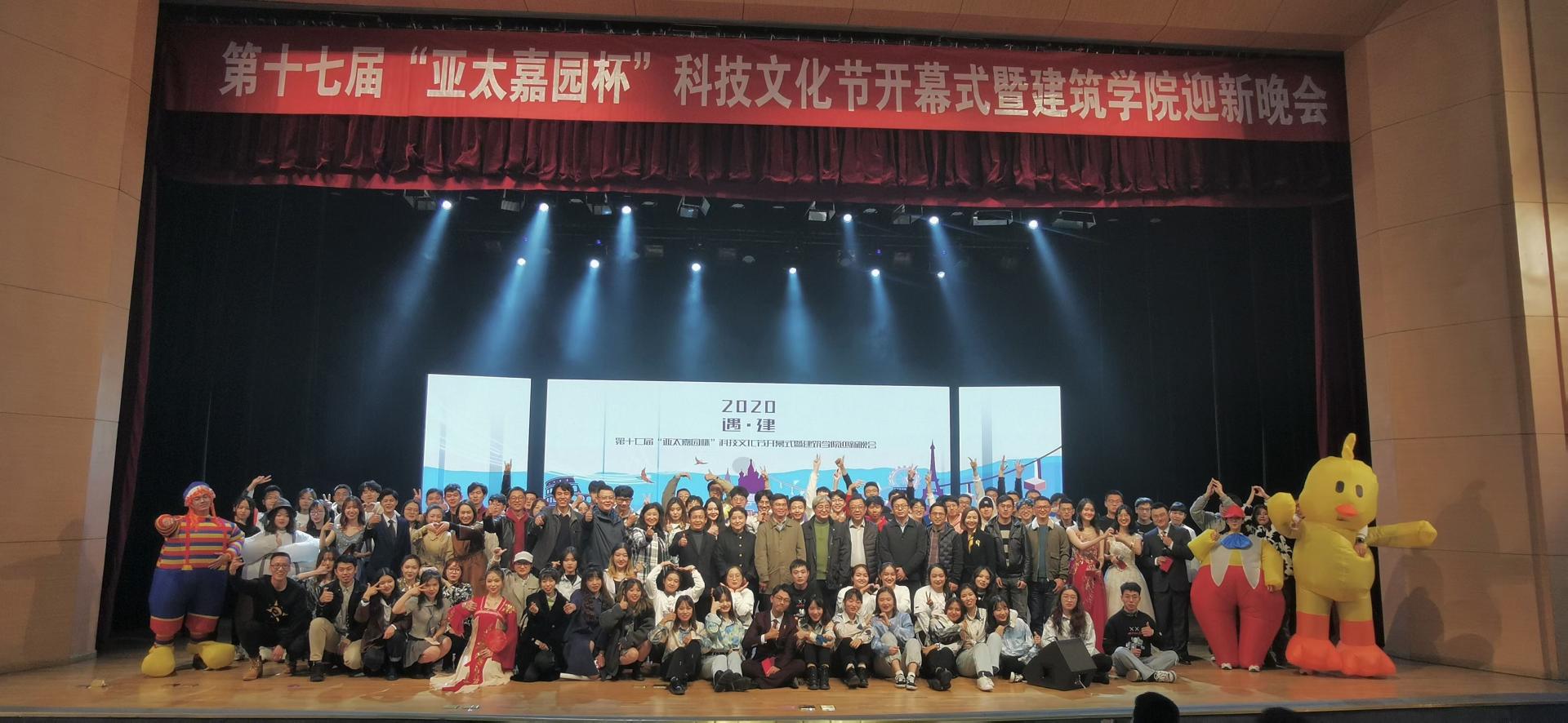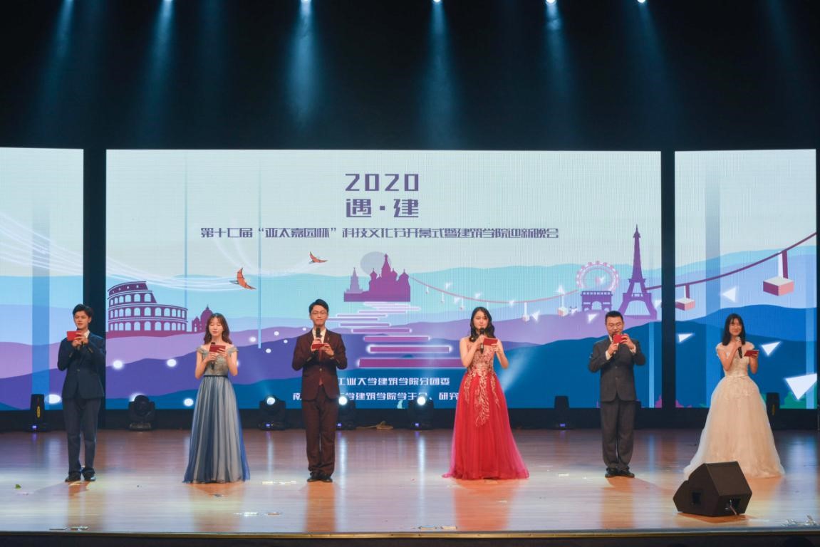 11月22日晚7点,太阳成集团tyc第十七届“亚太嘉园杯”科技文化节开幕式暨2020迎新晚会在太阳成集团tyc江浦校区博雅堂举办。公司党委常委、纪委书记王敦宝,南京“亚太嘉园”智慧空间营造有限公司总经理、公司员工方小朋,公司党委员工工作部副部长许翠梅,公司党委研究生工作部副部长季明,校团委副书记王郁超,公司党委书记郭华瑜,公司党委副书记、经理胡振宇,副经理方遥、钱才云,公司党委副书记徐源,以及教师代表、学办全体辅导员,2020级全体新生、家长代表近千人参加了活动。