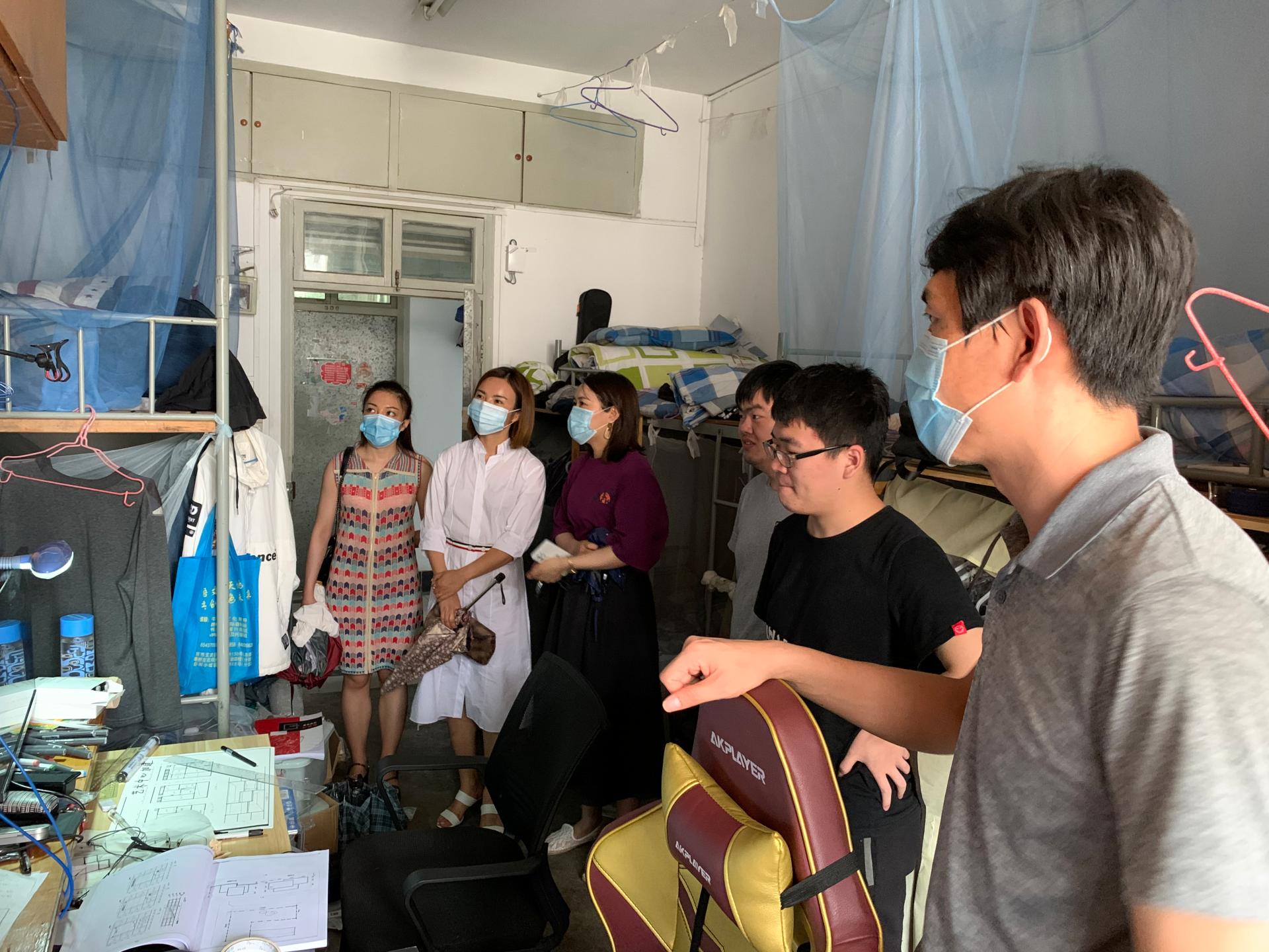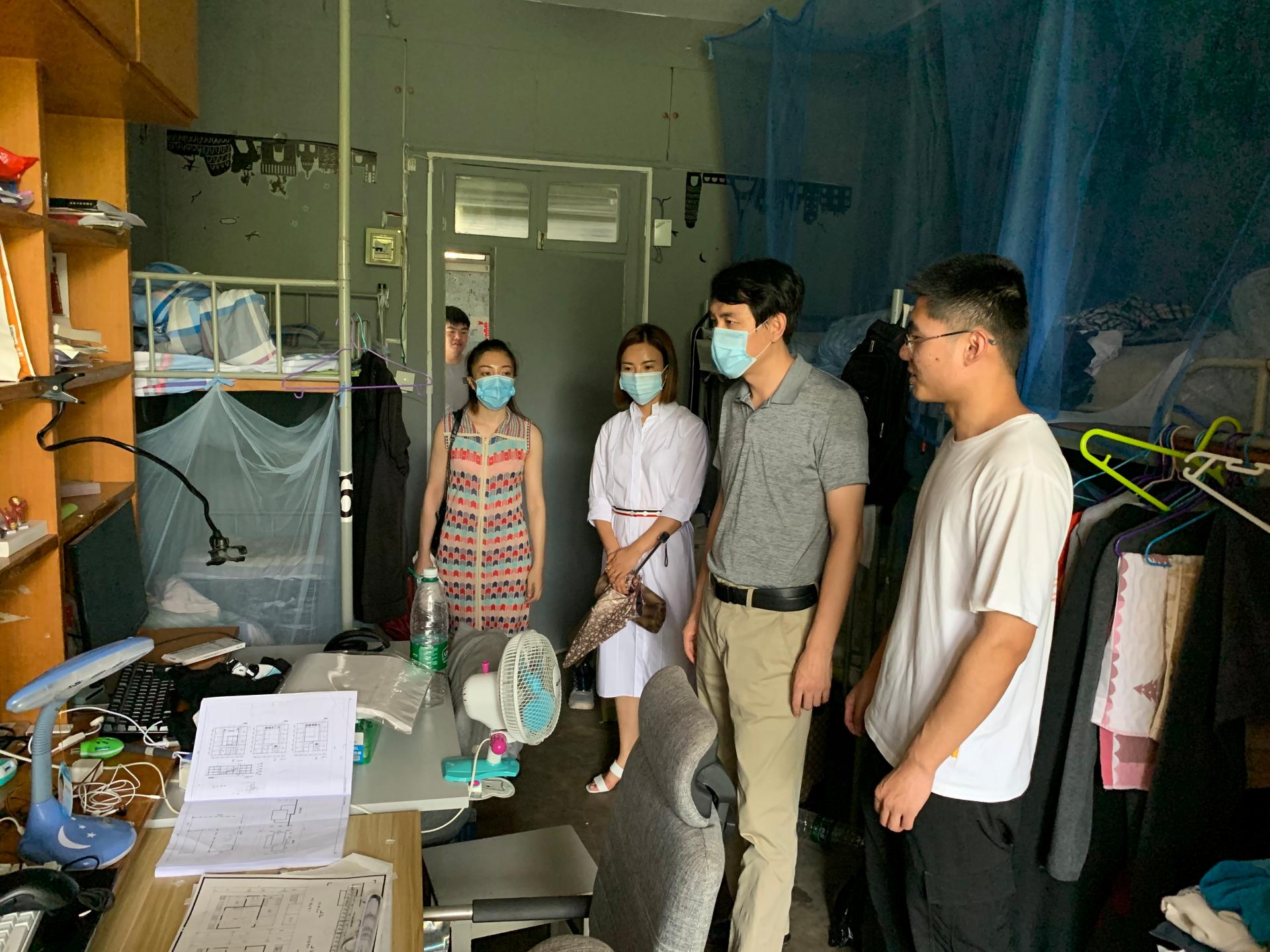 2020年7月10日,公司党委副书记徐源、员工事务办公室主任林宁、院团委副书记张清扬、辅导员管苏、王伟杰等老师,来到江浦校区员工宿舍,看望了暑假期间留校住宿的同学,为他们送上了亲切的关怀。