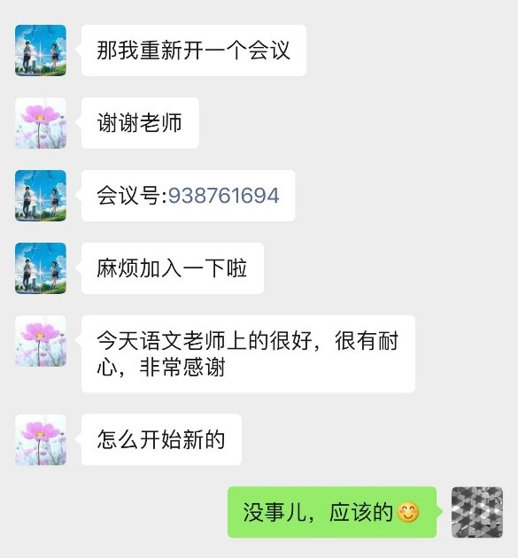 “屏幕里专心写作业的模样,和你一起读英语时努力跟上你的声音,偶尔发来的文字或者语音想和你说说话……疫情面前,他们依旧在努力的长大,这是一群可爱的孩子们!陪着他们的时间虽然短暂但快乐又满足!”——吴相礼同学