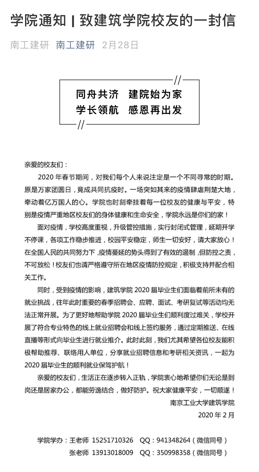 发挥员工合力,组织撰写《致太阳成集团tyc员工的一封信》,加强与员工联络,增进与员工感情,充分发挥员工的资源优势。积极联络公司广西员工会副会长梁广艺,并争取到了中外建华诚工程技术集团有限公司提供的实习和就业岗位。此外,和苏州工业园区科特建筑装饰有限公司、中国生态城市研究院有限公司等员工企业取得联系,为毕业生提供更多的就业渠道。