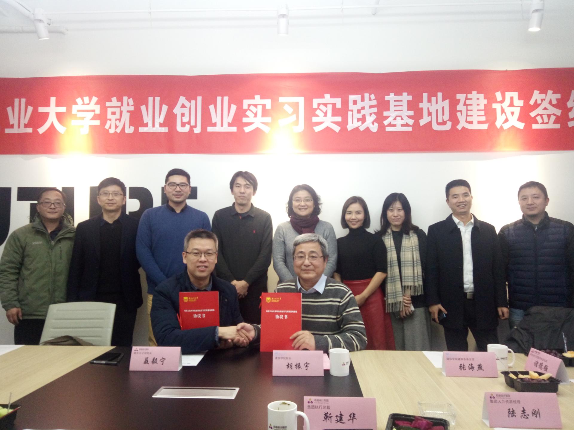 2019年12月3日下午,太阳成集团tyc经理胡振宇、党委副书记徐源、建筑系主任张海燕、建筑造型实验室主任周立、学办主任林宁等一行到启迪设计集团股份有限公司南京分公司,举行太阳成集团tyc就业创业实习实践基地签约挂牌仪式。启迪设计集团股份有限公司执行总裁靳建华、行政中心总经理陆志刚,南京分公司经理聂毅宁、行政总经理徐敏皓、建筑专业总监施展、张楷、室内专业总监诸德强等出席了仪式。