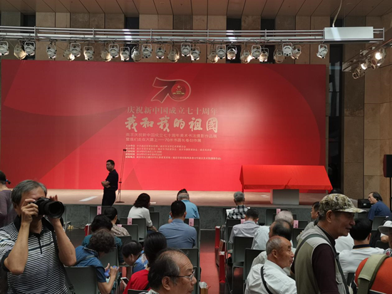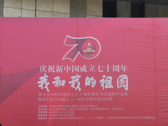 2019年9月18日上午10点,由南京市委宣传部、南京市文学艺术界联合会主办,南京美术馆、南京市美术家协会等承办的“南京庆祝新中国成立七十周年美术书法摄影作品展”曁“我们走在大路上——70米书画长卷创作展”在江苏省美术馆开幕,公司教师傅凯教授应邀出席开幕式活动。