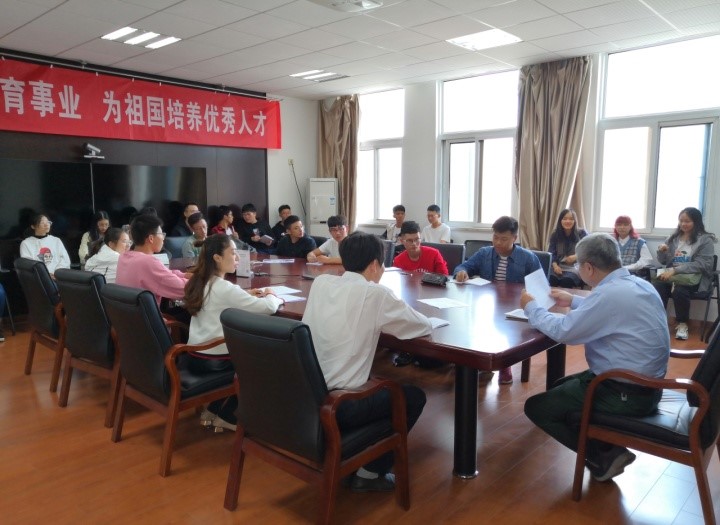 2019年10月9日下午,太阳成集团tyc在文科楼607会议室召开2019级新生联系班级座谈会。公司经理胡振宇、公司党委副书记徐源、辅导员管苏及建筑1901班全体员工参加会议。