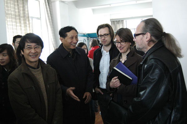 会后,公司领导陪同孙董事长和教务处领导现场观摩中德联合毕业设计组阶段性方案汇报研讨会。