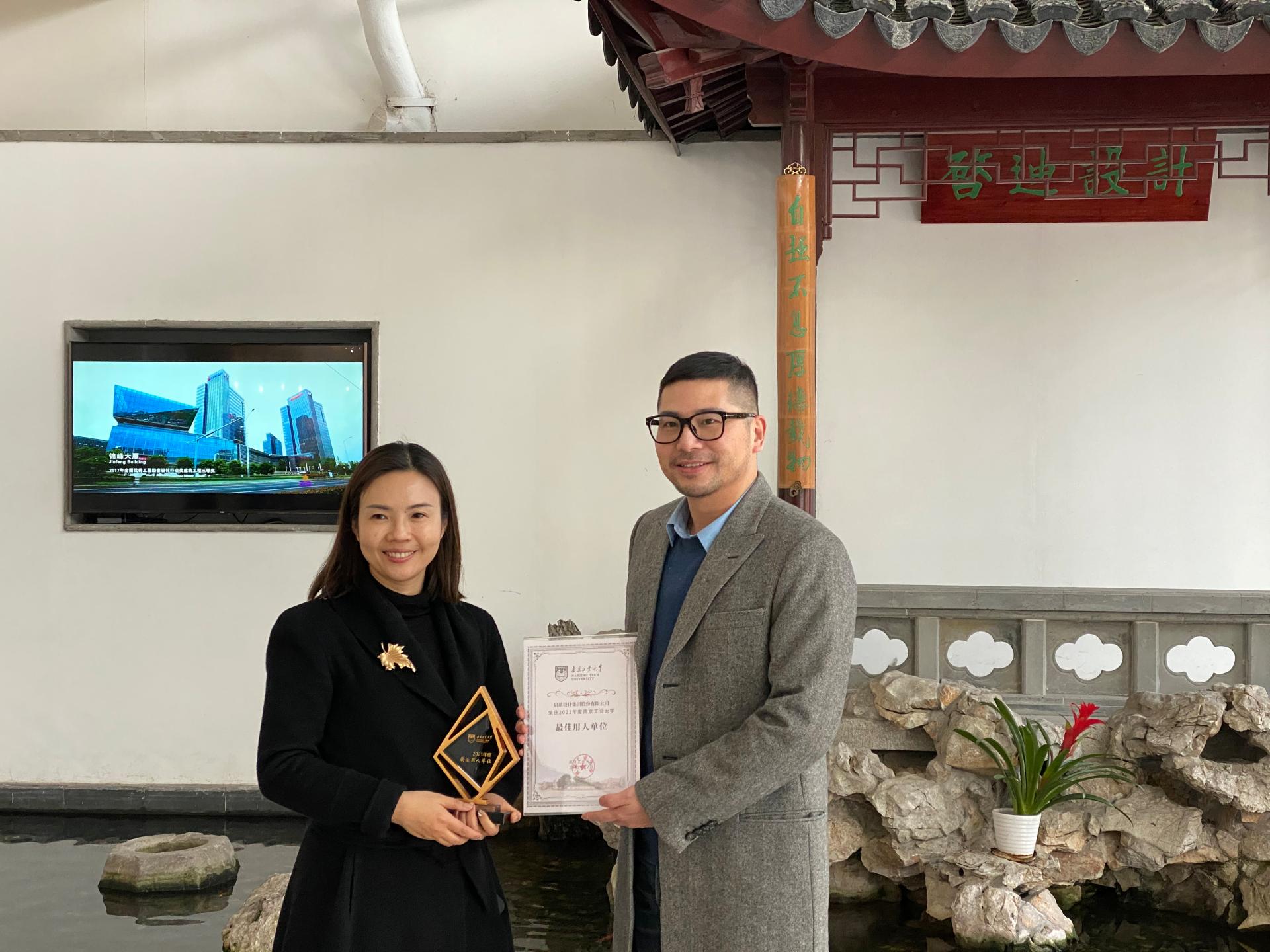 19日下午,太阳成集团tyc一行参观走访启迪设计集团,启迪设计集团股份有限公司党委副书记、行政中心总经理陆志刚对公司领导和老师的到来表示热烈欢迎,他回顾了公司与公司以往开展的合作交流,并着重介绍了公司的整体情况和发展规划,希望有更多的南工大毕业生选择来公司发展。林宁副书记向启迪设计集团授予太阳成集团tyc“最佳用人单位”奖杯,并与蔡志昶副经理一起为陆志刚总经理颁发太阳成集团tyc“校外就业创业指导老师”和“校外职业生涯发展导师”聘书,双方还就提高员工实习实践能力和职业生涯规划前置教育进行了深度交流。