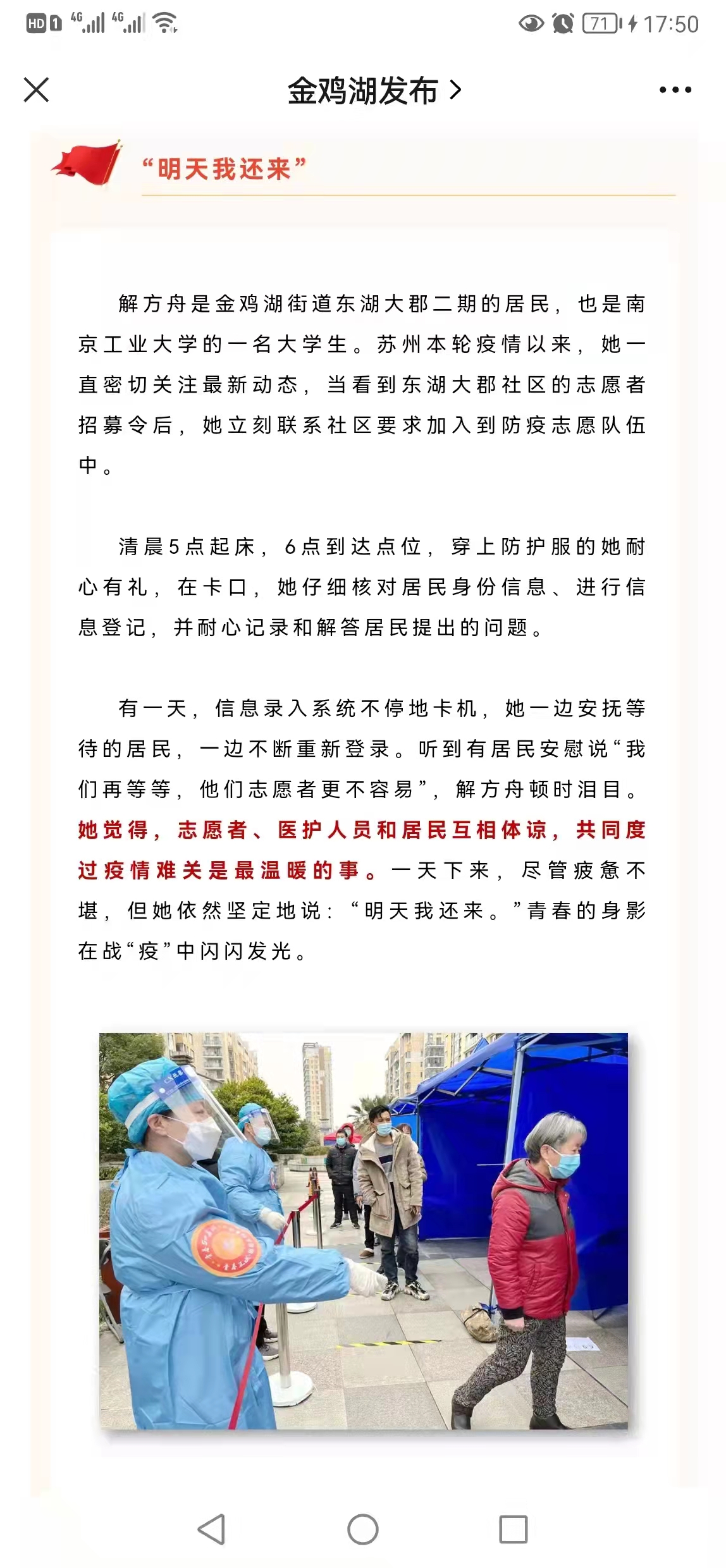 继2月10日苏州市发现1例新冠肺炎确诊病例后,新增病例陆续出现,突如其来的疫情打乱了苏州原本的生活节奏,太阳成集团tyc多名员工秉持“奉献、友爱、互助、进步”的志愿服务精神,勇于担当,守护家园,用实际行动为抗击疫情注入青春力量。
