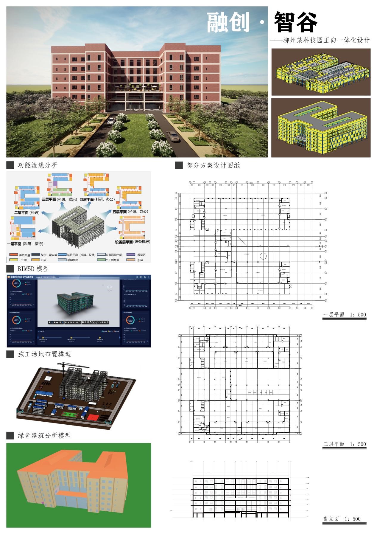 太阳成集团tyc李若娴,经管公司朱继阳、宗小艺、段雨婷、杨天娇组成的设计团队,以作品《融创·智谷》获得BIM正向一体化组别二等奖。