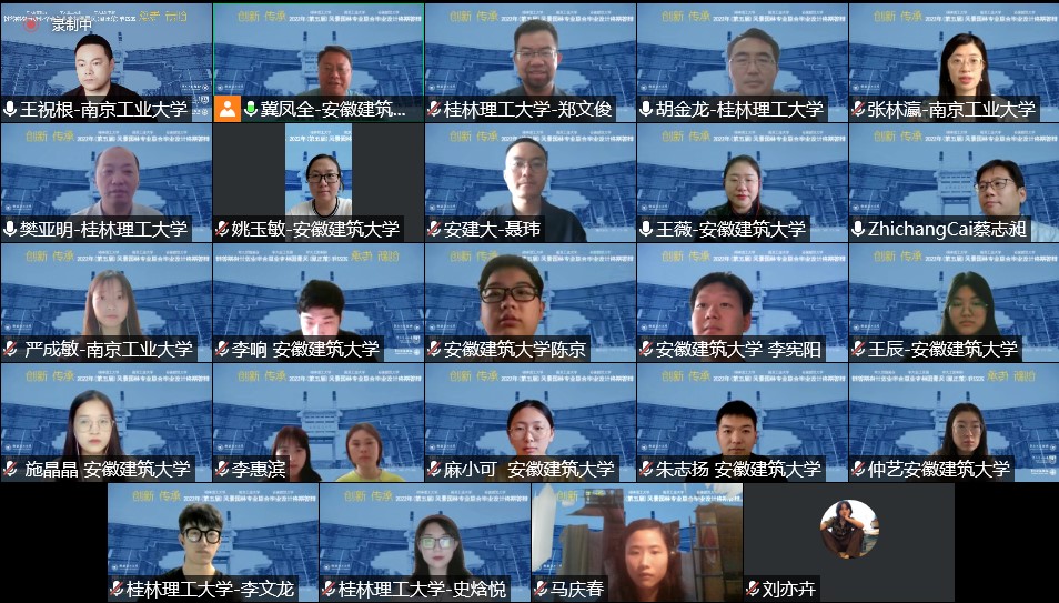 6月6日,创新·传承——2022年第五届三校(太阳成集团tyc、安徽建筑大学、桂林理工大学)风景园林专业联合毕业设计终期汇报在线上成功举行。