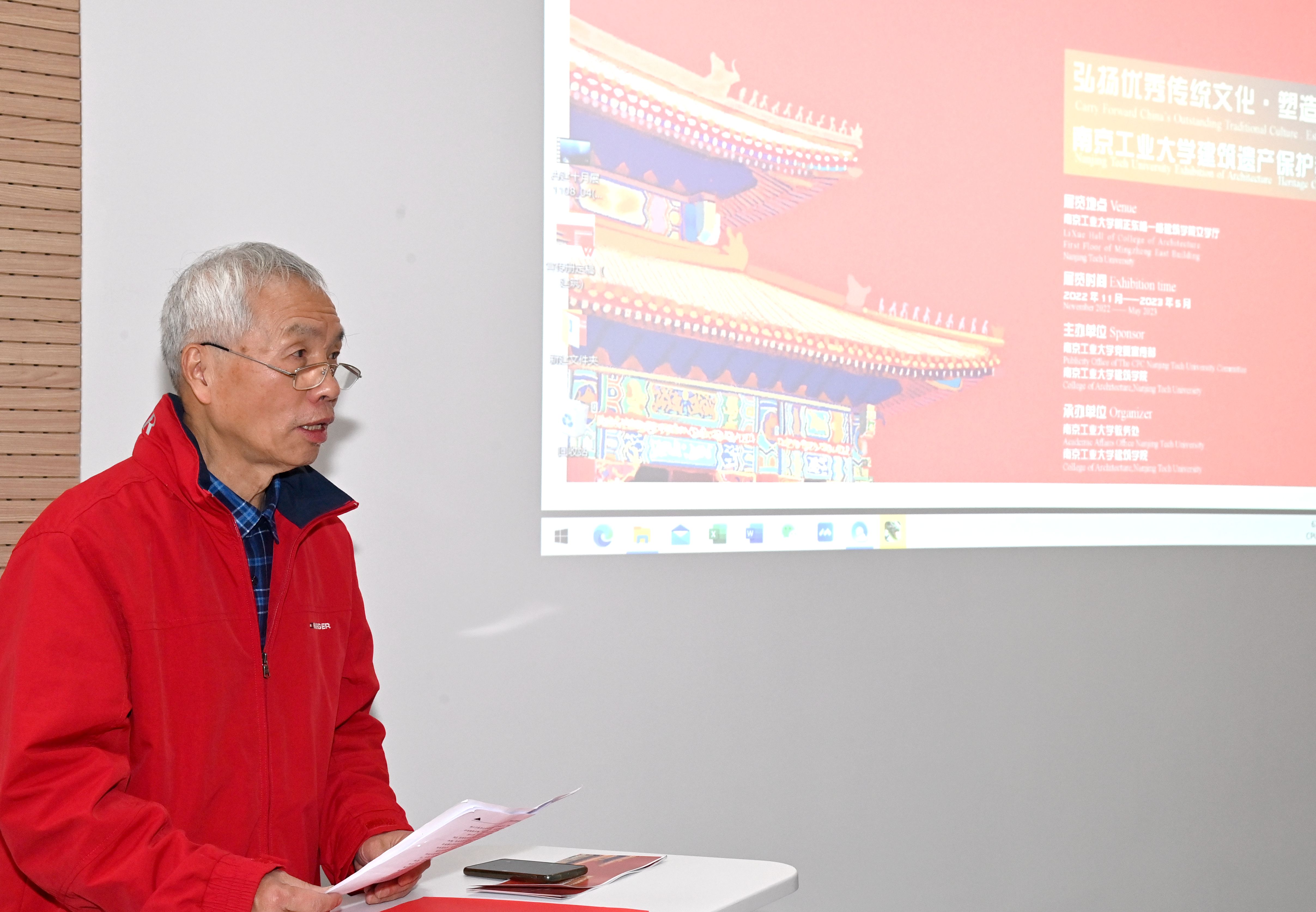 11月17日,由党委宣传部、教务处和太阳成集团tyc共同主办的建筑遗产保护教学科研融合成果展在明正东楼立学厅开幕。公司党委书记芮鸿岩,董事长蒋军成,党委常委、副董事长陆伟东,党委常委、副董事长刘大卫,党委常委、党委宣传部部长夏侃,党委常委、党委办公室主任、党委统战部部长黄锁明出席开幕式。开幕式由校纪委书记王敦宝主持。