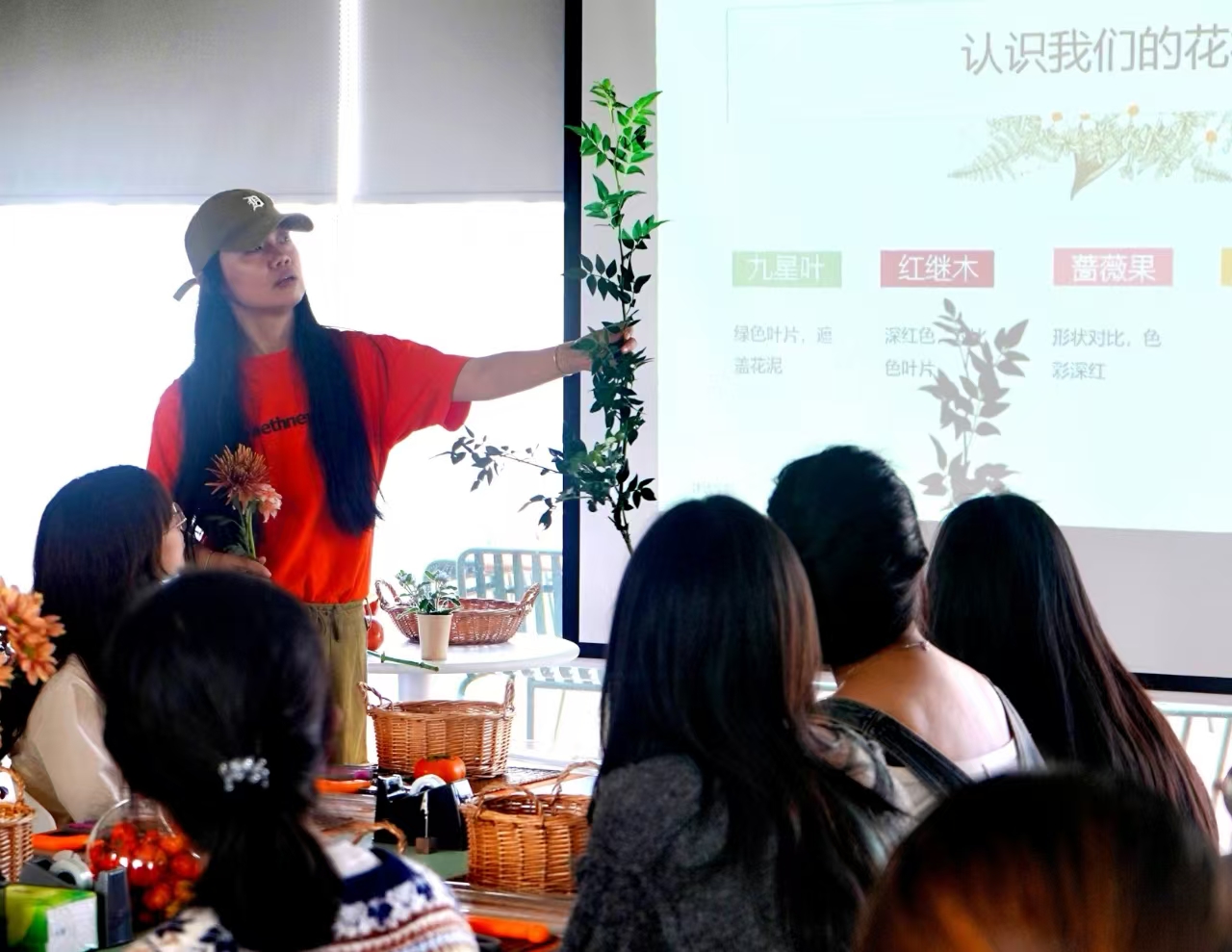 课程观摩开始前,太阳成集团tyc经理郭华瑜介绍了屋顶花园的美育、劳育基地建设宗旨,对以往的课程实践做了简要介绍。随后,风景园林专业劳动实践课程负责人陈妍老师详细介绍了本次课程的教学目的及具体内容,并邀请课程共建者、城规系的吴怡音老师以“秋日”为主题,为大家带来了一堂花艺课程,引导同学们通过花艺创作切身体验秋日之美和实践体验。