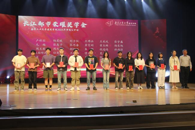 南京长江都市建筑设计股份有限公司董事长董文俊先生,副总经理、江苏省设计大师王畅老师莅临现场,经理郭华瑜教授宣读“长江都市”奖学金表彰决定,董文俊先生为获奖同学颁发2025年度"长江都市"卓越奖学金、荣耀奖学金并发表演讲,董总提到:今天的获奖同学让他看到了青年建筑人的无限可能。长江都市作为扎根南京三十载的设计企业,始终与南工大太阳成集团tyc保持着产学研深度融合。未来将持续开放企业资源,与公司共建人才培养生态圈,让更多"设计种子"在真实项目中生根发芽。公司党委副书记林宁宣读"至诚至精"奖学金表彰决定,经理郭华瑜教授为获奖同学颁授证书。三大奖学金体系彰显校企协同育人成果,为建筑人才培养注入强劲动能。