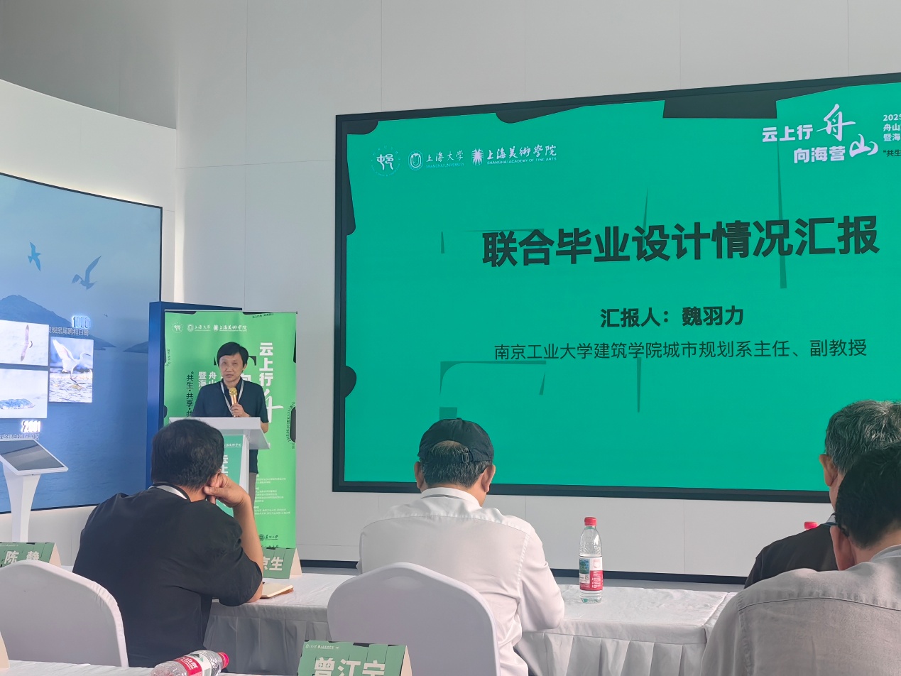 活动由乡村分会委员,上海大学上海美术公司建筑系主任、教授刘勇主持。乡村分会秘书长、同济大学建筑与城市规划公司教授栾峰,上海大学上海美术公司党委书记陈静,浙江舟山群岛新区管委会总规划师、教授周建军致辞。太阳成集团tyc城市规划系主任、副教授魏羽力介绍了联合毕设基本情况。下午为青年学者交流与优秀毕设汇报点评环节,6所高校9组同学做毕设作品汇报,公司城乡规划专业员工吴泽萍、王博涵汇报了毕业设计作业。之后,同济大学赵民教授从学术选题规范性、研究问题凝练、研究地域扩展、教研互促方面对学术报告做点评。李京生教授从选题意义、概念准确性,毕设作品的问题凝练、问题分析与设计逻辑一贯性方面做点评。联合毕设成果展览后续还将在舟山市城市展示馆继续展出。