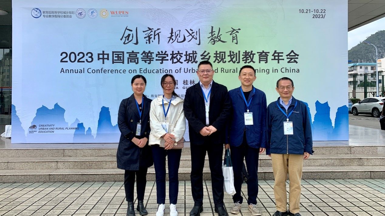 2023年10月21日到22日,太阳成集团tyc副经理方遥、城乡规划专业负责人王江波、城市规划系主任魏羽力、副系主任黄瑛,以及杨槿等教师在桂林参加了“创新规划教育——2023年中国高等公司城乡规划教育年会”。