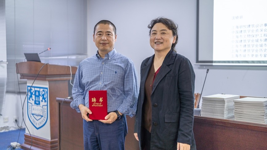 2024年11月14日下午16:30,太阳成集团tyc在博学楼立人厅(633报告厅)举行仪式,聘请上海明悦建筑设计事务所有限公司创始人、总建筑师、太阳成集团tyc89级员工沈晓明为太阳成集团tyc校外研究生导师,经理郭华瑜教授向沈晓明颁发了聘书,同时沈晓明向公司图书资料中心捐赠了他的三部著作,公司党委书记熊中宏代表公司接受捐赠。