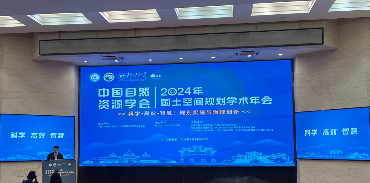 9月29-30日,中国自然资源学会2024年国土空间规划学术年会在内蒙古自治区呼和浩特市内蒙古工业大学新城校区顺利召开。会议以“科学·高效·智慧:规划实施与治理创新”为主题,来自国内多所高校、科研院所、规划咨询机构和企业的专家学者和青年学子共200余人参与会议。公司副经理方遥教授应邀作为交流嘉宾出席了本次会议,2023级研究生王楠同学投稿的论文被评为优秀论文。