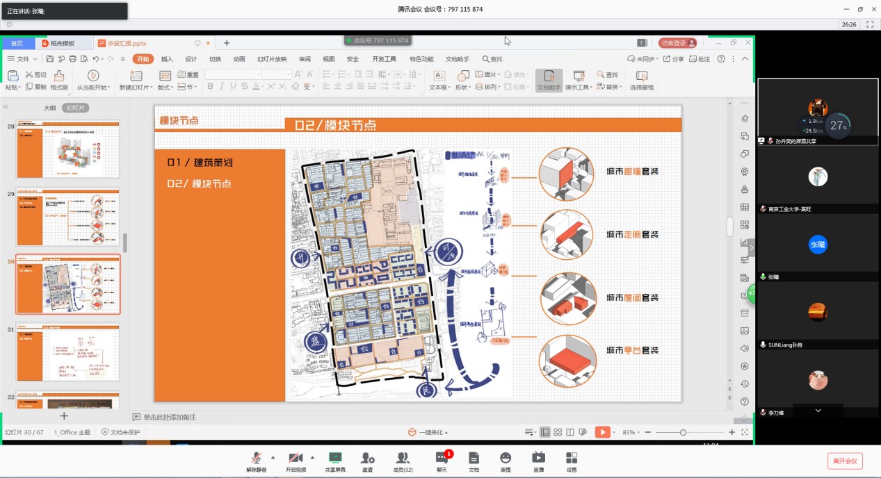员工汇报全部结束后,两位组长进行了总结。公司经理胡振宇教授对本次汇报交流成果给予了充分肯定,并与大家分享了自己对苏州古城保护与更新以及本地块城市设计的理解。中国矿业大学建筑与设计公司副经理孙良教授十分赞赏各校同学们在特殊时期的钻研精神,在评点方案后,又向同学们讲解了第二轮方案设计的具体要求。