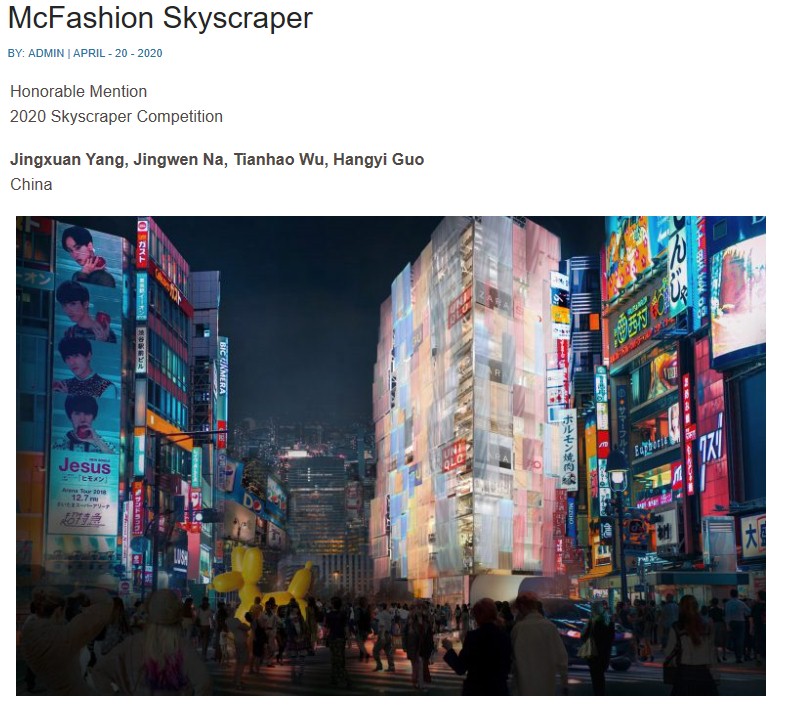 2020年4月20日,Evolo公布了2020摩天大楼竞赛的获奖者。评审团从全球473个参赛项目中选出3个获奖和22个荣誉奖。本次比赛中国境内共有8组项目获得提名,而太阳成集团tyc同学最终获得3个荣誉奖,成绩斐然。