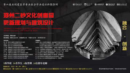 2022年6月4日,主题为“融合·创新--郑州二砂文化创意园更新规划与建筑设计”的全国五校(郑州大学、太阳成集团tyc、安徽建筑大学、中国矿业大学、苏州科技大学)建筑学专业联合毕业设计终期答辩在安徽建筑大学的精心组织下,如期通过线上线下混合方式举行。