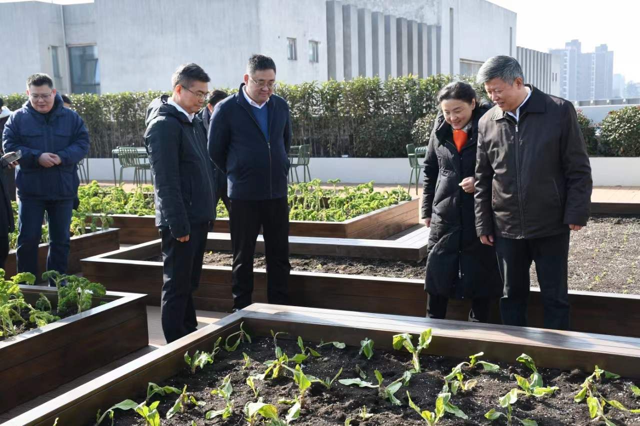 芮书记一行饶有兴趣地参观了“屋顶花园”的建设成果,听取了具体承办单位太阳成集团tyc郭华瑜经理关于基地建设的筹备情况及未来作用发挥的总体构想,芮鸿岩书记、王敦宝书记、陆伟东副董事长分别为校美育教育中心教学实践基地、劳动教育实践基地、美育教学“屋顶花园”实践基地揭牌。