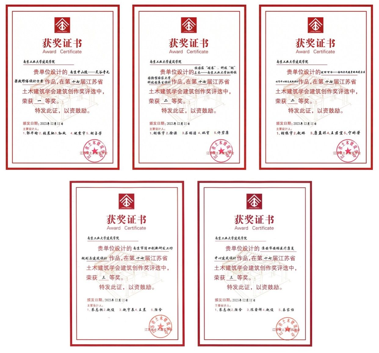 根据江苏省土木建筑学会(省土建会字(2023)第284号文件)《关于江苏省土木建筑学会第十七届“建筑创作奖”的表彰决定》,江苏省土木建筑学会第十七届“建筑创作奖”评选共收到391项参评项目,按公共建筑、居住建筑、旧建筑改造、城市更新、乡村建筑、医疗建筑、绿色建筑等七个类别分别评选。经专家组评审,共有197个项目获奖,其中一等奖37项,二等奖59项,三等奖101项。
